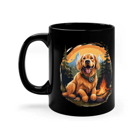 "Campfire Companion: Dawn Patrol" Golden Retriever Coffee Mug, 11oz Black Mug