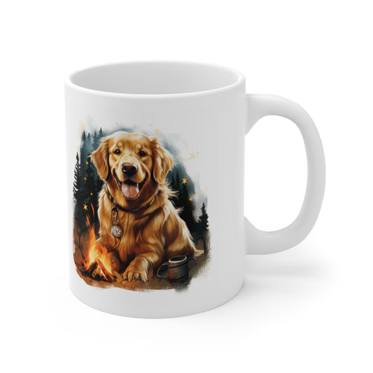 "Campfire Companion: Midday Adventure" Golden Retriever Coffee Mug Accent Coffee Mug, 11oz